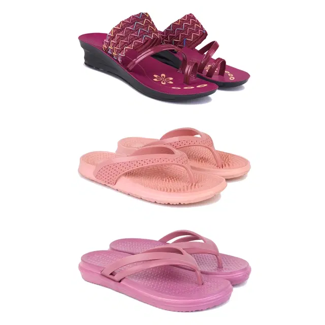 Combo of Heels with Slippers for Women (Multicolor, 6) (Pack of 3)