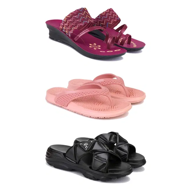 Combo of Heels with Slippers for Women (Multicolor, 8) (Pack of 3)