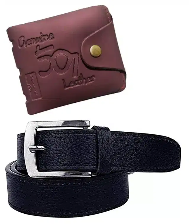 Combo of Men's Belt & Wallet, Set of 2 (Black & Brown) - Buy Online at CityMall