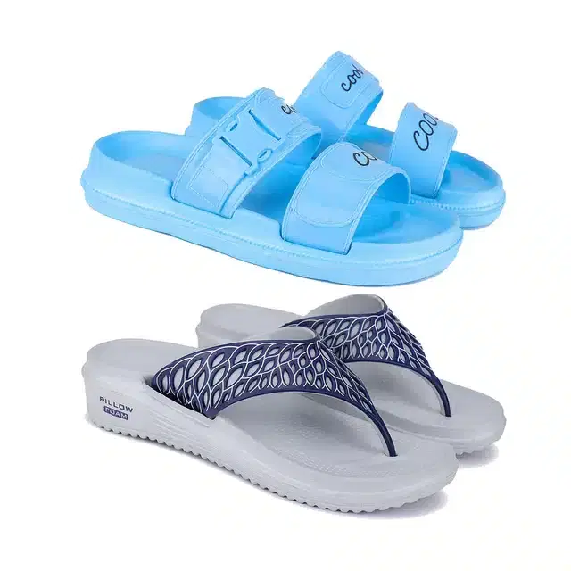Combo of Sliders & Flip Flops for Women, Pack of 2 (Multicolor, 6)