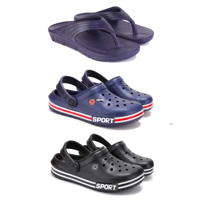 Combo of Slippers with Clogs for Men, Set of 3 (Multicolor, 7)