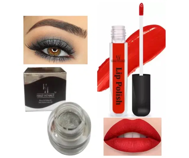 Combo of Smokey Glitter Pigment Eyeshadow with Lip Polish, Grey & Red, Set of 2 - Buy Online at CityMall