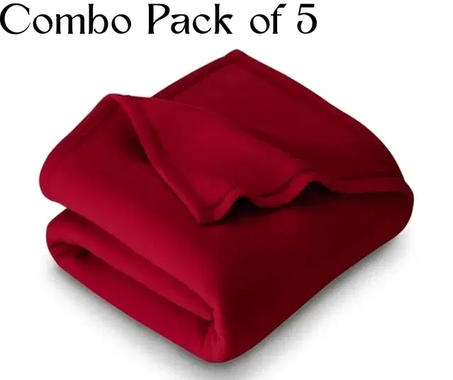 Combo Pack of 5 Solid Polar Fleece Blanket Red (60x90) - Buy Online at CityMall