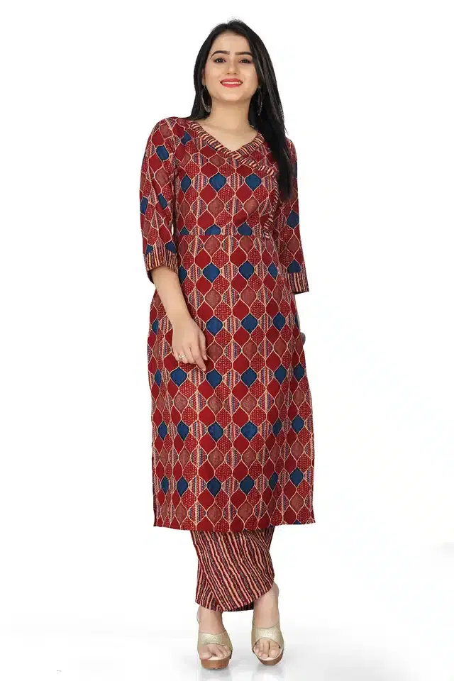 Fabric : Cotton , Pant Fabric: Cotton ,Work:Printed , Sleeve Type :3/4 Sleeve ,Neck Type: V Neck