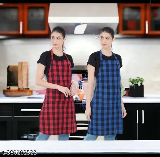 Cotton Apron for Men & Women, Red & Blue, Pack of 2