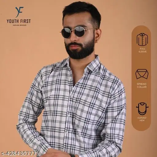 Name: Youth First Men's Checked Regular Spread Collar White Shirts