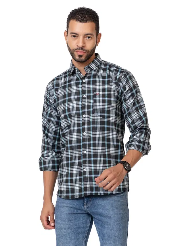 Cotton Blend Checkered Shirt for Men, Black (M) - Buy Online at CityMall