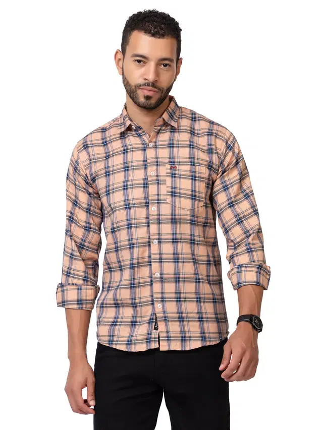 Cotton Blend Checkered Shirt for Men, Peach (L)
