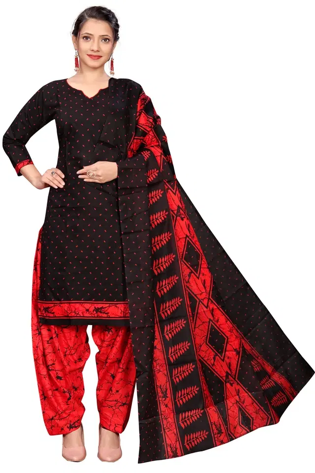 Beautiful Suit look pretty like never before.Wearing this Black Color Suit which made from Rajnandini with Red Colored Floral Print Cotton Blend Bottom and Black & Red Colored Cotton Blend Dupatta.Suit has also decorative work like Geometric Print.This beautiful suit features a classy Printed Work all over,which makes it a smart pick for all occasions. You can wear this Suit in different styles. You can wear it occasionally or casually.