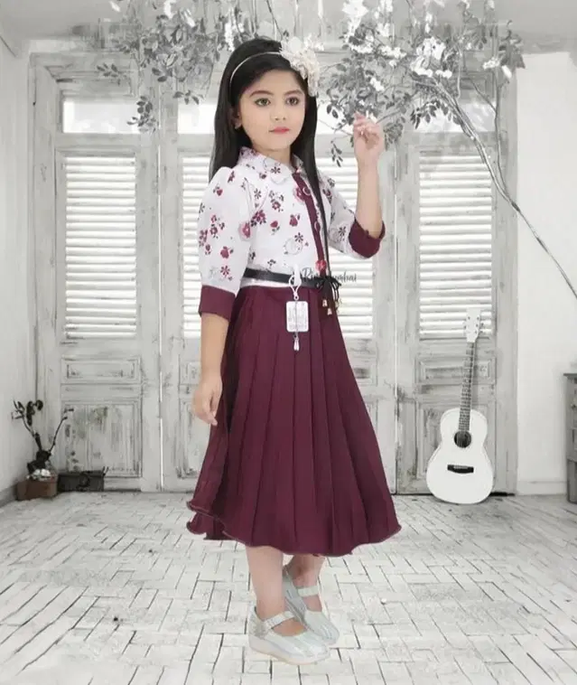 Cotton Blend Frock for Girls (Wine & White, 9-10 Years) - Buy Online at CityMall