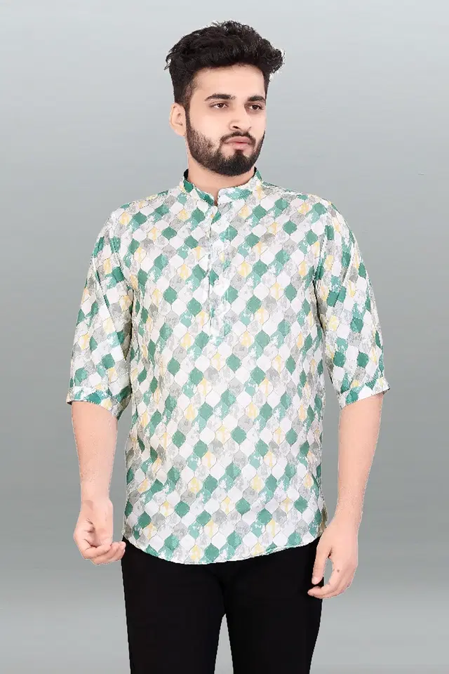 Cotton Blend Printed Kurta for Men (Optical White, XL) - Buy Online at CityMall