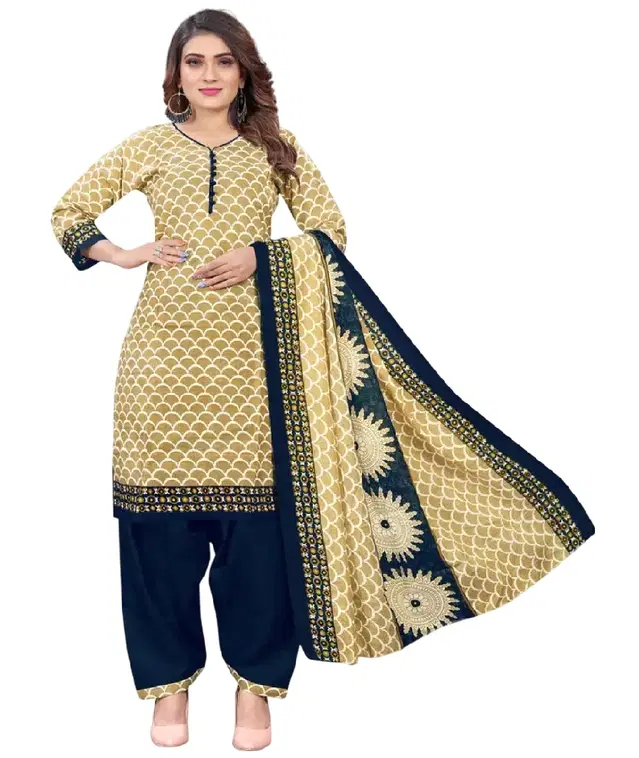 Cotton Blend Printed Salwar Suit with Dupatta for Women (Beige, M) - Buy Online at CityMall