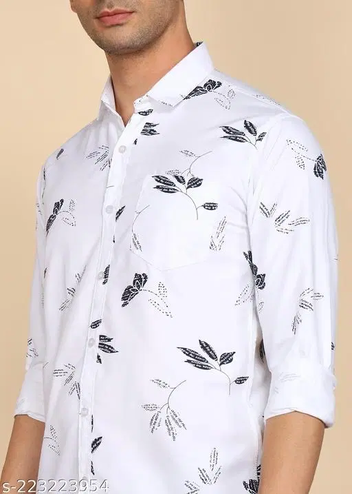 Name: Youth First Men's Printed Spread Collar White Shirts