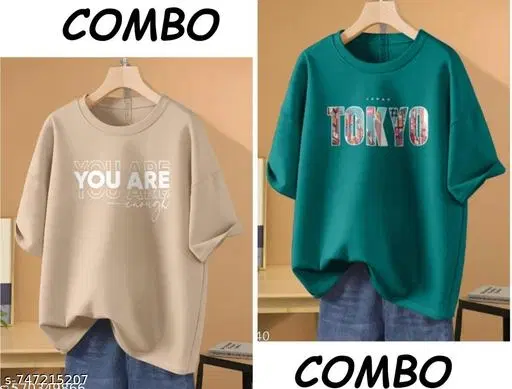 Cotton Blend Printed T-shirt for Women, Multicolour, Pack of 2 (XL) @ ₹370 - Buy Online at CityMall