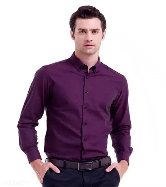 Cotton Blend Solid Full Sleeves Shirt for Men (Purple, M) - Buy Online at CityMall