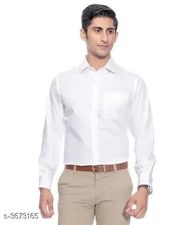Cotton Blend Solid Full Sleeves Shirt for Men (White, M)