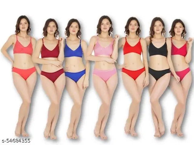 Cotton Blend Solid Lingerie Set for Women, Pack of 7 (Multicolor, 38A) @ ₹469 - Buy Online at CityMall