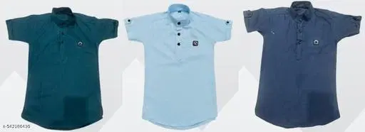 Cotton Blend Solid Short Kurta for Kids, Multicolor, Pack of 3 (9-10 Years) @ ₹529 - Buy Online at CityMall