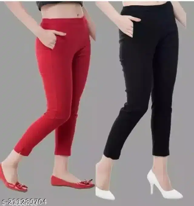 Cotton Blend Trouser for Women (Red & Black, 28) @ ₹589 - Buy Online at CityMall