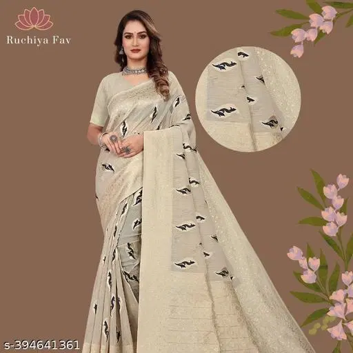 Elevate your ethnic elegance with our for women Stylish Cotton Linen Saree with zari work featuring exquisite work. The rich blend of cotton and linen sari ensures c, while the intricate Zari detailing adds a touch of opulence. Accompanied by an unstitched blouse piece, this saree promises timeless style and versatility for any occasion. Embrace tradition with a modern twist.Traditional saree for women with attractive designer sarees.New collection of 2024 sarees for function cotton party wear sarees for wedding function latest silk new saree pattu sadi or sari in new model. These ethnic saris for ladies lend a very formal and proper look because of the stiff fabric. these high quality sarees are most preferred for the festive because of the lightweight, they can be worn in all four seasons. This beutifully designed saree is crafted by skill craftsmen without compromising on its quality. With this beautiful design and fabric New Sarees Collection 2024. Women's Hand Block Kalamkari Batik Bagru Ikkat Ajrakh Jaipuri Sanganeri Printed Handloom Cottonl Linen Saree With Matching Blouse piece. We Also Deal in peacock saree in lavender cotton saree organza saree partywear chanderi saree Kathapadara saree Banarasi saree ginja of saree.