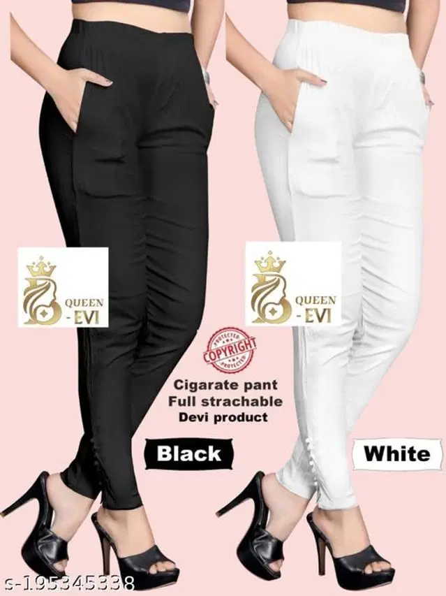 Cotton Lycra Straight Fit Trouser for Women, Pack of 2 (Multicolor, 46)