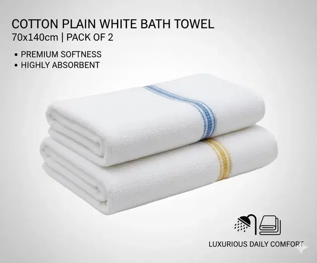 Cotton Plain White Bath Towel 70x140cm Pack of 2 - Buy Online at CityMall