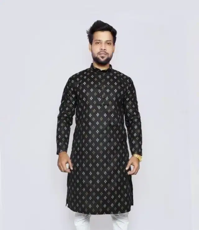 Cotton Printed Full Sleeves Kurta for Men (Black, L) - Buy Online at CityMall