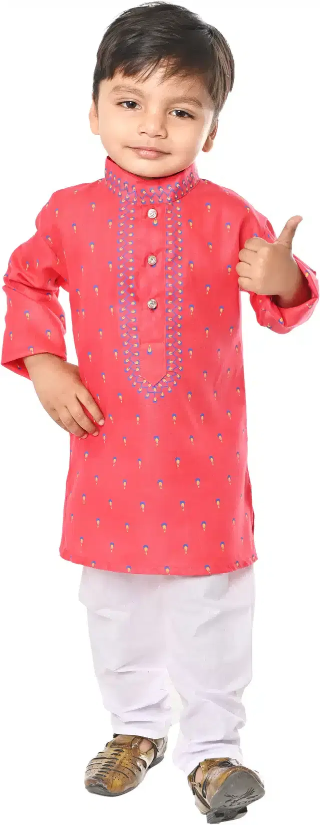 Cotton Printed Kurta & Pajama Set for Boys (Red & White, 2-3 Years) @ ₹481 - Buy Online at CityMall