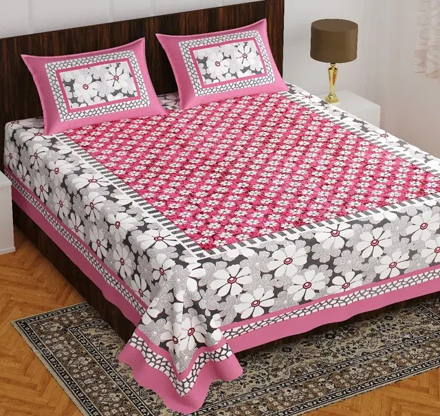 Jaipuri 100% Cotton Bedsheets with 2 Pillow Covers Bedsheets for Double bed You can also use in Queen size bed New design Fast Colors