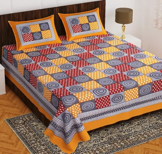Jaipuri 100% Cotton Bedsheets with 2 Pillow Covers Bedsheets for Double bed You can also use in Queen size bed New design Fast Colors