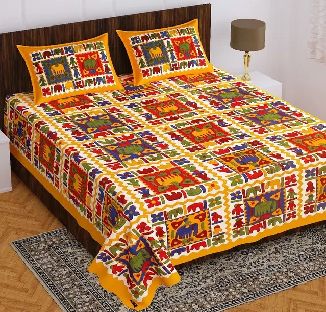 Cotton Rajasthani Jaipuri Double Bedsheet with 2 Pillow Covers, Multicolor, 90x100 inches - Buy Online at CityMall