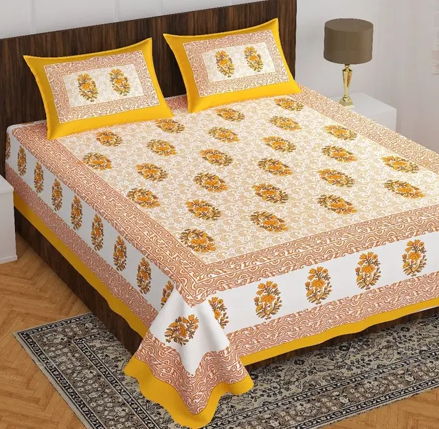 Jaipuri 100% Cotton Bedsheets with 2 Pillow Covers Bedsheets for Double bed You can also use in Queen size bed New design Fast Colors