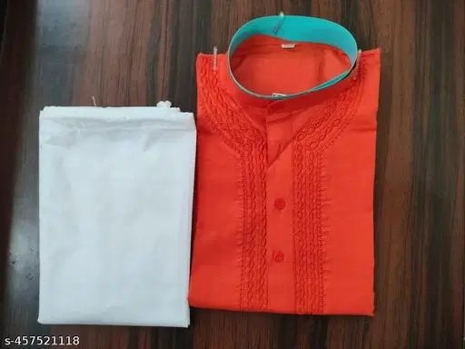 Cotton Solid Kurta Set for Men, White & Orange (XXL) @ ₹380 - Buy Online at CityMall