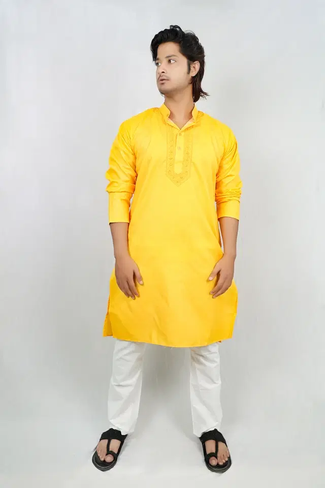 Cotton Solid Kurta with Pyjama for Men (Yellow & White, L) - Buy Online at CityMall