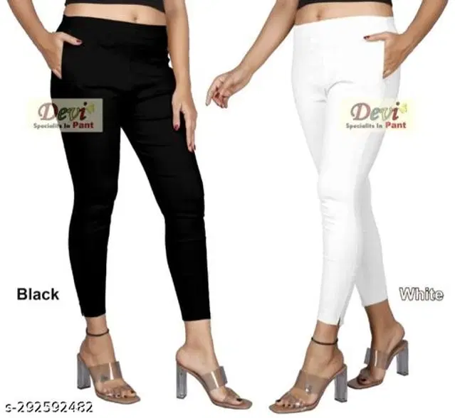 Cotton Straight Fit Trouser for Women, Pack of 2 (Multicolor, 46)