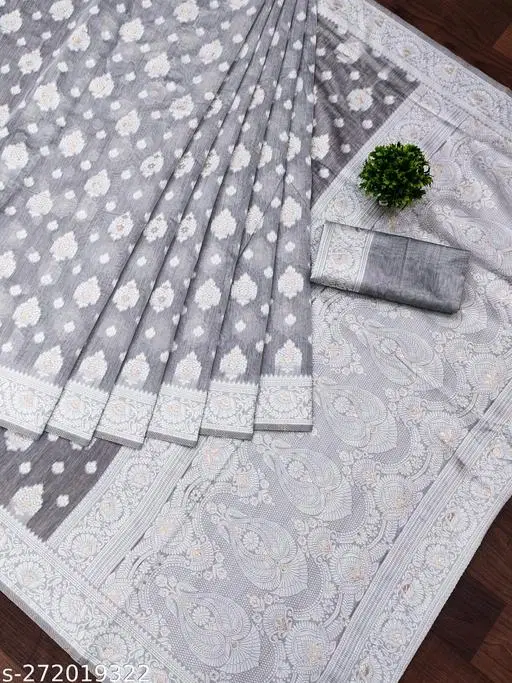 Cotton Zari Woven Saree for Women (Grey, 6.3 m) @ ₹690 - Buy Online at CityMall