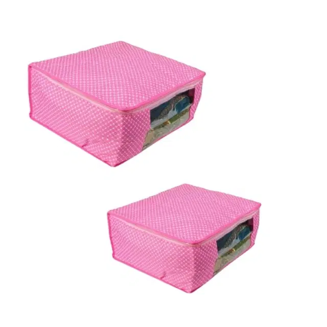 Cotton Zip Closure Saree Covers, Pink, Pack of 2