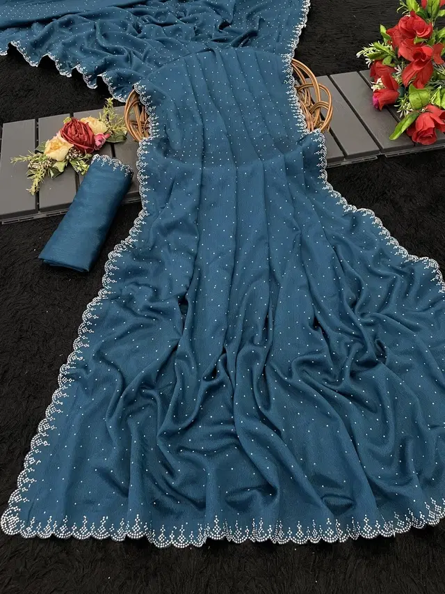 Crepe Embellished Saree for Women (Teal, 6.3 m) - Buy Online at CityMall