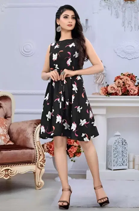Crepe Floral Print Dress for Women (Black, M) - Buy Online at CityMall