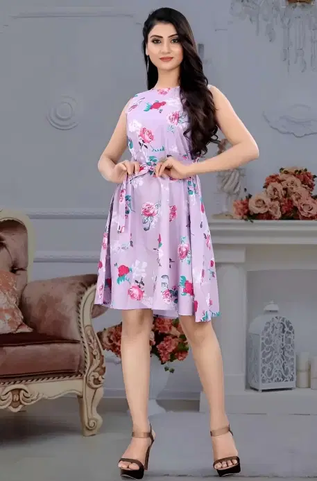 Crepe Floral Print Dress for Women (Lilac, M) - Buy Online at CityMall