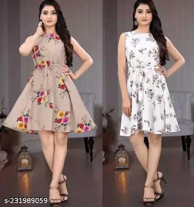 Crepe Printed Flared Dress for Women, Pack of 2 (Brown & White, XXL) - Buy Online at CityMall