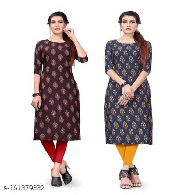 Crepe Printed Kurti for Women, Pack of 2 (Brown & Navy Blue, XXL)