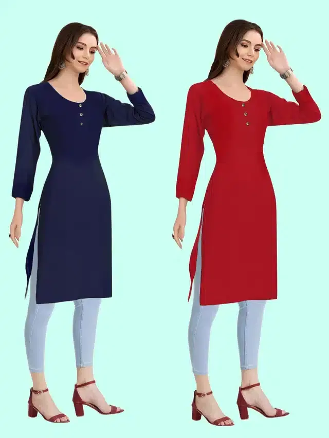Crepe Solid Kurtis for Women, Pack of 2 (Navy Blue & Red, XXXL)