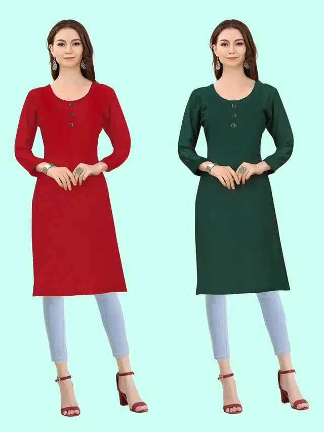Crepe Solid Kurtis for Women, Pack of 2 (Red & Green, XXXL)