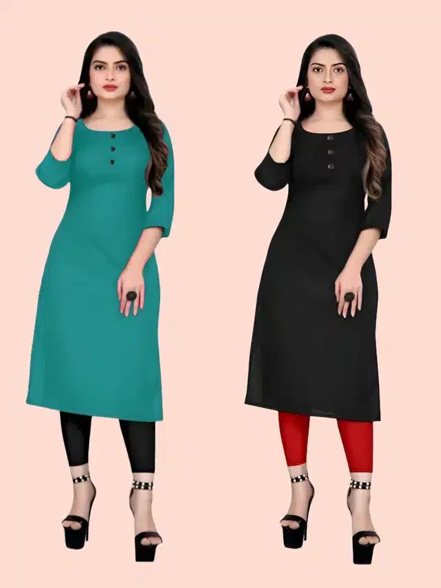 Crepe Solid Kurtis for Women, Pack of 2 (Sky Blue & Black, XXXL)