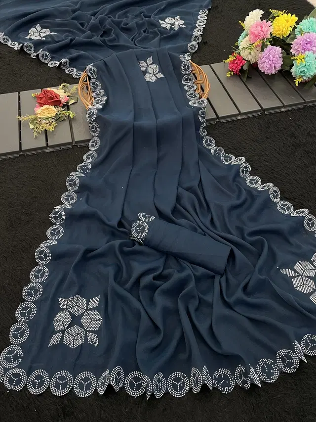 Crepe Solid Saree for Women, Dark Grey (6.3 m) @ ₹429 - Buy Online at CityMall