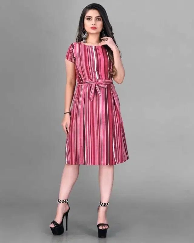 Crepe Stripted Dress for Women (Pink, L) - Buy Online at CityMall