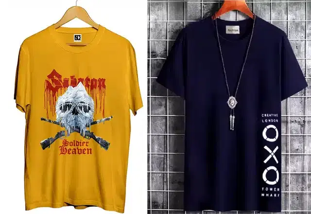 Crew Neck T-Shirts for Men, Pack of 2 (Black & Yellow, XL) - Buy Online at CityMall