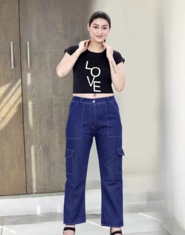 Denim Flap Jeans for Women (Dark Blue, 30)
