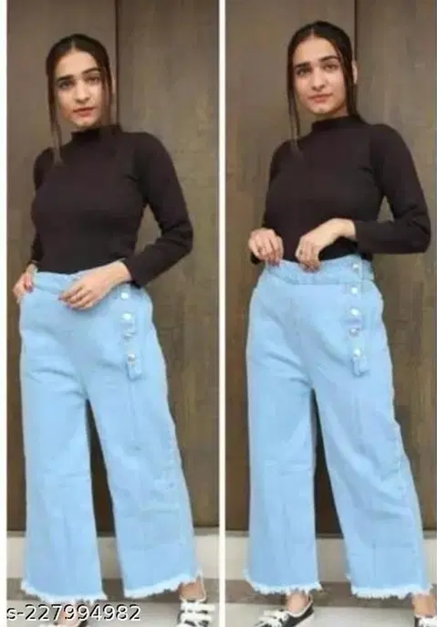 Name: Baggy Jeans,Women Side button Denim Jeans/Pants/Palazzo/Trouser for Girl's